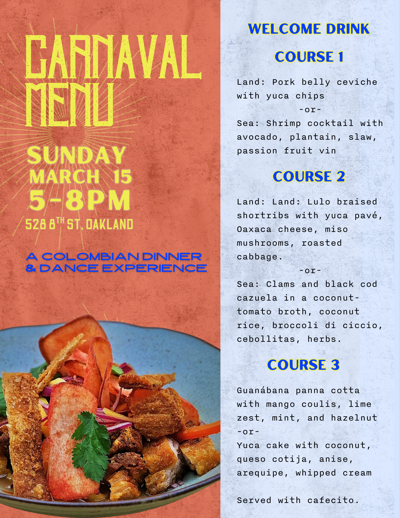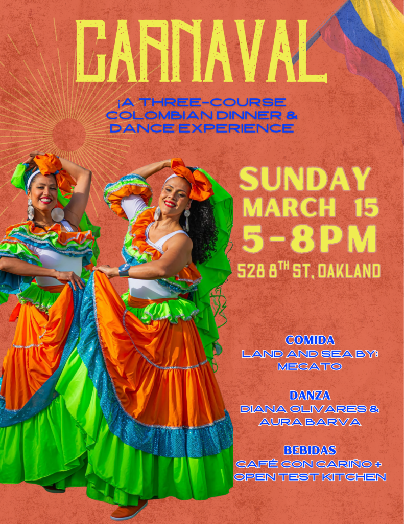 Upcoming Event March 15 – CARNAVAL – a three-course dinner and dance collaboration with Mecato, Cumbia Diana and Café con Cariño